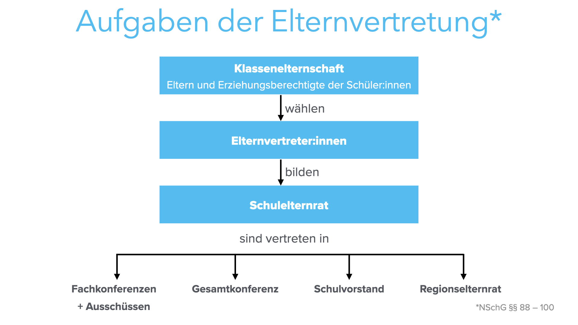 (Hinweise hierzu sind im niedersächsischen Schulgesetz unter § 38a Abs. 3 zu finden.)